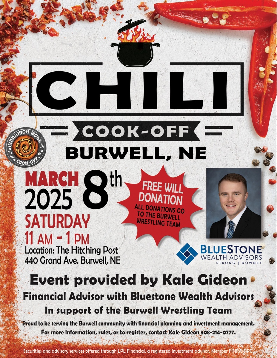 Please register for this event by calling Kale Gideon at (308) 233-3263 or emailing kgideon@bswadvisors.com with your name, chili entry nickname, and category (chili or cinnamon roll).